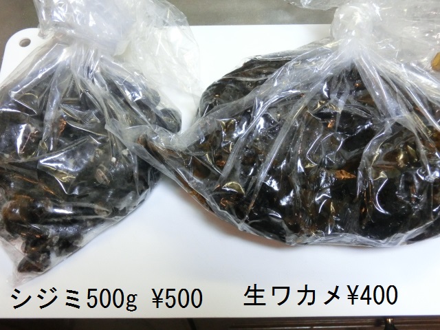 今日は(残り物の)シジミ(1kg入り\1,000-)を薦められましたが、多すぎるので断ると半分量販売してくれました。 嬉しいので、神奈川産ワカメ\400-も(勢いで)買いました。 何よりも仲卸専用番号入りキャップをかぶった若者が一生懸命頑張っているのですから、多少の協力はするべきでしょう。