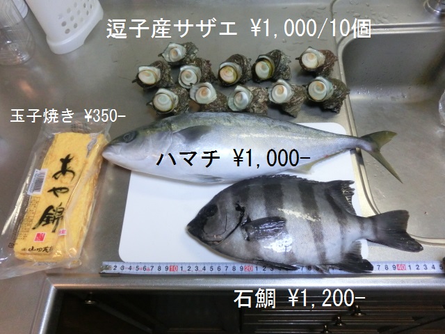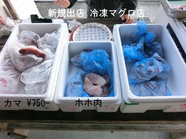 今日は「仲卸組合だけの出店」で、AM08:30から販売との事なのでテンションは↓(悲)。 AM08:15に現着した時は、既に販売終了間近となっていました。 AM07:00頃からお客が並び始め、8時前には販売開始との事でした。 目玉商品はサザエ(小7個)¥1,000-、冷凍マグロ\2,000〜\3,000程度で、「市価の半額」と豪語(?)していましたが、前回のカニの相場からみて、40%程度安のようです。