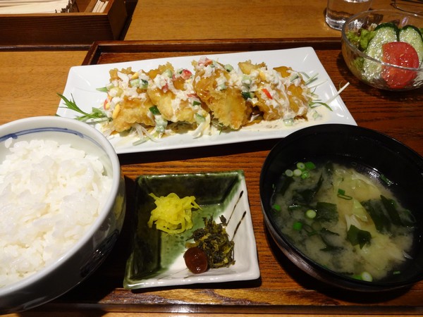 それぞれラーメンと二人で一皿のから揚げ。4個入りでカリカリして美味しいから揚げでした。 最初に夫にラーメンの麺を少し取って貰ったのに、途中でから揚げ2個目は無理なお腹一杯感たっぷりに。また麺を引き取ってくれはったので何とかもう一個とラーメン完食。ふぅ〜、満腹!