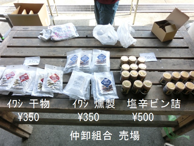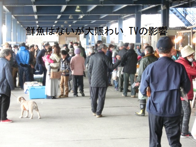 一方、仲買・海産系の3店舗は顧客ニーズを反映してか「詰め放題」盛りです。 カキ売場=マガキ詰め放題/\1,500- (前回は\1,000との事)収穫量は変わらないハズなのでこれはアカンやろ。 サザエ売場=\1,000/7個 前回の10個より数は減ったが大きくなったのでOK。アサリ詰め放題\500-。シジミ¥1,000/1kgは前回通り。 マグロ売場=12月から出店の80歳過ぎのオヤジの店。冷凍マグロ・カマ詰め放題\1,000-をオーダーするが店主に袋詰めを依頼する。ほほ肉\500-は初物として購入(スジが多いので焼物が宜しい)。 同時に漁船が横付けされ、見慣れた船長が市役所職員と話し「今日は漁協が来てないから販売OK.」とマトウ鯛\1,500、ヒラメ\2,000、石鯛等を岸壁で販売。実にシズル感があって宜しい!。