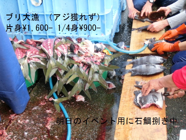いつも通りのAM05:00現着、21番。先週はネット上では休日だったが、何と急遽開催したとの事(怒)。 魚市場を覗くと「石鯛、ハマチ中心で時々グレ(黒鯛)と真鯛。」イワシはいつも通りで、活魚部門には生ワカメや貝類ではトコブシ、ウニが出回るようになって来た。そう、春の海らしくなった。 石鯛は旬を過ぎ、ナマ臭くなり始めるので、値段も下がるとの事。春の食材が出回り始めた事も嬉しい。 今日の朝市では小型魚がなければ「名誉ある撤退」も視野に入れておこう。